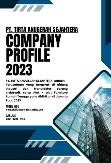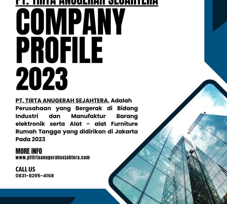 Perseroan Terbatas Tirta Anugerah Sejahtera Adalah Perusahaan yang Bergerak di Bidang Industri dan Manufakturing Barang elektronik dan Alat - alat Furniture Rumah Tangga. Yang didirikan di Jakarta Pada Tahun 2023 14 Maret, Indonesia. Perusahaan ini Telah Mempunyai Banyak Cabang di Seluruh Wilayah Indonesia serta Telah Mempunyai Banyak Barang yang dibutuhkan Oleh Masyarakat.
